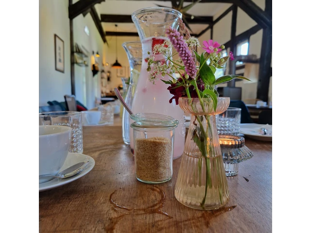 Eine Bushaltestelle befindet sich in unmittelbarer Nähe zum Café