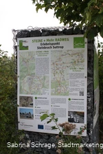 Auf einer Anhöhe bei Suttrop öffnet sich die Landschaft in eine überraschende Weite und gibt den Blick über tausend Hügel frei. Es könnte kaum einen schöneren Platz geben für den Geopark in Suttrop!
