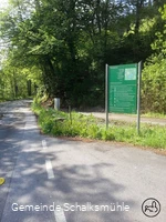 Die Glörtalsperre ist von hier aus 900 m entfernt und fußläufig (ca. 20 Minuten bergauf) erreichbar. Oberhalb des Parkplatzes gibt es einen befestigten Weg als Alternative zur Straße, die Treppen können hier sehr rutschig sein (aktuell gesperrt)!