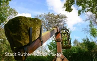 Als Baustoff prägte der bei Rüthen abgebaute Grünsandstein die örtliche Architektur- und Kunstgeschichte maßgeblich. Auch über den Soester Raum hinaus hat sich der Stein mit der charakteristischen grünlichen Färbung einen Namen gemacht. Um der Bedeutung von Abbau und Verarbeitung in der Region Rechnung zu tragen, eröffnete der Förderverein Heimatpflege und traditionelles Brauchtum Rüthen e.V. im November vergangenen Jahres ein historisches Handwerkerdorf. In 14 Monaten ist mit Unterstützung der NRW-Stiftung ein Projekt entstanden, das eine Übersicht über die Geschichte des regionalen Handwerks liefert. So informiert die Dauerausstellung über geologische Strukturen, bergbaurechtliche Schürfregelungen, die Entwicklung der Abbautechniken und Verarbeitungsformen des Steins im Laufe der Geschichte.