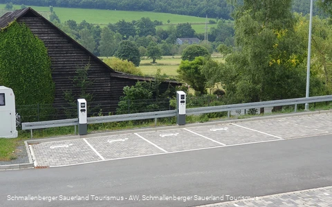 Am Parkplatz Rupers Kamp in Schmallenberg stehen 4 E-Auto-Ladestationen zur Verfügung.