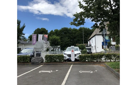 Die Stromtankstelle befindet sich auf dem Gelände des Hotel Jagdhaus Wiese nahe des Haupteingangs.