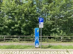 Die Stromtankstelle (Nr. 13321) steht auf dem Parkplatz der ehem.