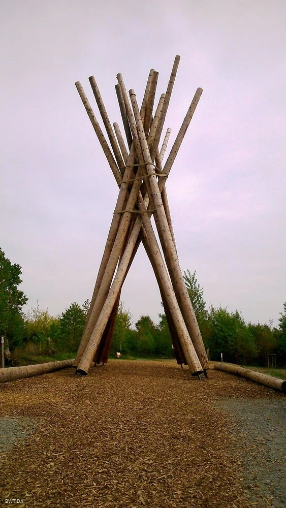 The Kyrill-Tor is a memorial to Kyrill, a reminder of the unimagined destructive force, but also of reconstruction, reorganization and a new beginning. Each one is 20 meters long, weighs 1.5 tons and comes from the Brilon city forest. Galvanized steel feet are embedded in a concrete foundation. A peeled, otherwise untreated wooden colossus grows diagonally upwards from each metal base and marks the entrance to Brilon's Bürgerwald.