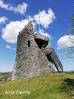 The castle ruins on the Schlossberg in Meschede Eversberg have been refurbished with a viewing platform. From here you have wonderful views of the upper Ruhrtal, the Arnsberg Forest Nature Park and the southern mountains of the "Rund um den Hennesee" vacation area.