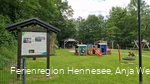 The rest and mining playground can be reached on foot or by bike via the former route of the "Bähnchen". Parking is available at the sports field or at the Schützenhalle right next door.