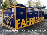 Onder de stuwdamwand zijn verschillende fietsboxen geplaatst, waar je fietsen kunt huren voor een individuele periode van