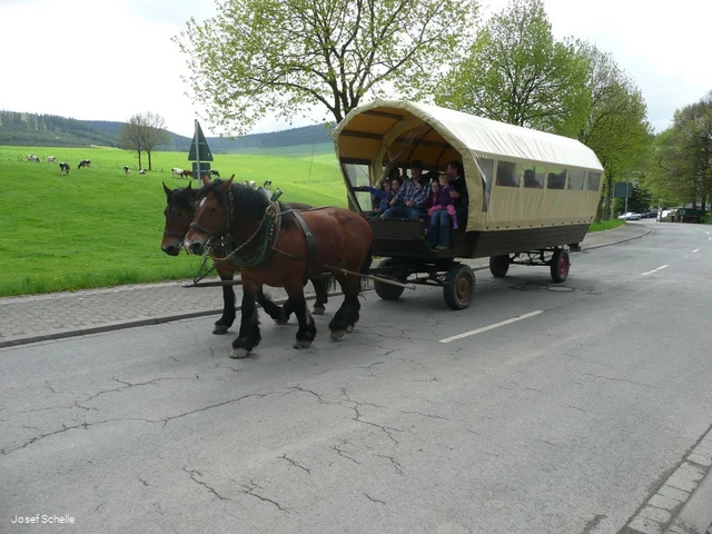 Wij bieden huifkartochten met paarden voor maximaal 24 personen, verwarmde huifkarren, de combinatie van tractor, paardentrailer en huifkar maakt het ook mogelijk om rond te rijden in Meinkenbracht, Sundern en Eslohe, koetstochten voor maximaal 8 personen, sleetochten voor maximaal 10 personen (onze slee met lopers en wielen maakt sleetochten ook mogelijk in de zomer).