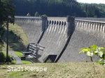 De damwand van het Kerspe stuwmeer is ook indrukwekkend. De dam is gemaakt van breuksteen en is 360 meter lang en 6 meter breed op de kruin. Hij werd in de jaren 1990 grondig gerenoveerd en versterkt. De dam zelf ligt echter net over de grens met het district Oberberge. Verreweg het grootste deel van het meer ligt echter op gemeentelijk grondgebied van Kierspe.