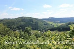 Een prachtig uitzicht op het dorp, de dalen en hoogten van het natuurpark Diemelsee en de bergen van Sauerland compenseren de inspanning van de klim.