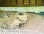 Dit deel moest worden gerestaureerd zodat de open racoven niet verder uit elkaar zou vallen. In de linker vuurhaardwand, op een hoogte van 20 cm boven de vloer, zit een vuistgroot windgat waarin oorspronkelijk een met klei gebakken mondstuk (vrije breedte 3 cm) werd gestoken. Lucht werd naar de binnenkant van de oven geblazen met behulp van een blaasbalg die in een trogvormige depressie was gemonteerd. Het ijzererts werd uit de naburige dagbouwmijn gehaald en naar de smeltplaats getransporteerd. Hier werd het erts bewerkt door het te breken tot de grootte van noten en erwten en te roosteren in een houtskoolvuur.