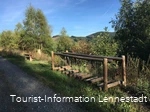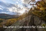 Vanaf het startpunt bij het Kur- und Bürgerhaus gaan we richting Stelenplatz en vandaar langs de Max-Lange-Weg naar de kerk. Bij de kerk steken we bij de voetgangerslichten de rijksweg B236 over. We volgen nu de weg "Drosselstraße" naar de begraafplaats en vanaf daar volgen we de borden van het bosleerpad, een witte dennenboom op een zwarte achtergrond, naar de Kranichstraße.Bovenaan slaan we linksaf en bij het volgende kruispunt slaan we rechtsaf de Storchenstraße in, die we verder het bos in volgen.Bij het volgende kruispunt bovenaan het bos slaan we rechtsaf en na ongeveer 200 meter slaan we opnieuw Die Linke in het bosleerpad in. Na een korte afstand houden we rechts aan en volgen het pad langs de bergkam.Nu is het tijd voor een korte klim naar de Rinsleyfelsen rots, want het uitzicht is echt de moeite waard!Om bij de Rinsleyfelsen rots te komen, houden we bij de volgende kruising Die Linke aan en volgen we de borden omhoog naar de Rinsleyfelsen rots. Eenmaal boven genieten we een tijdje van het uitzicht!Opgefrist gaan we terug naar het kruispunt bij het bos-avonturenpad. We volgen nu het pad rechtdoor in de richting van Saalhausen. Bij de 2e splitsing houden we rechts aan en volgen het bosleerpad naar het beginpunt.